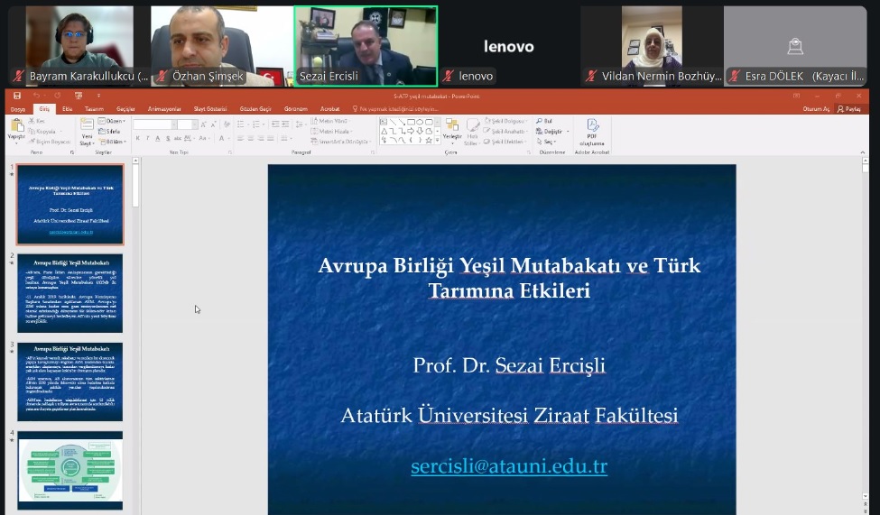 S-ATP Webinar serisinin 3. oturumu, 29 Aralık 2025 Pazartesi günü, platform yöneticisi Prof. Dr. Özhan ŞİMŞEK moderatörlüğünde, Prof. Dr. Sezai ERCİŞLİ'nin (Atatürk Üniversitesi), "Avrupa Birliği Yeşil Mutabakatı ve Türk Tarımına Etkileri" başlıklı sunumu ile gerçekleştirildi.